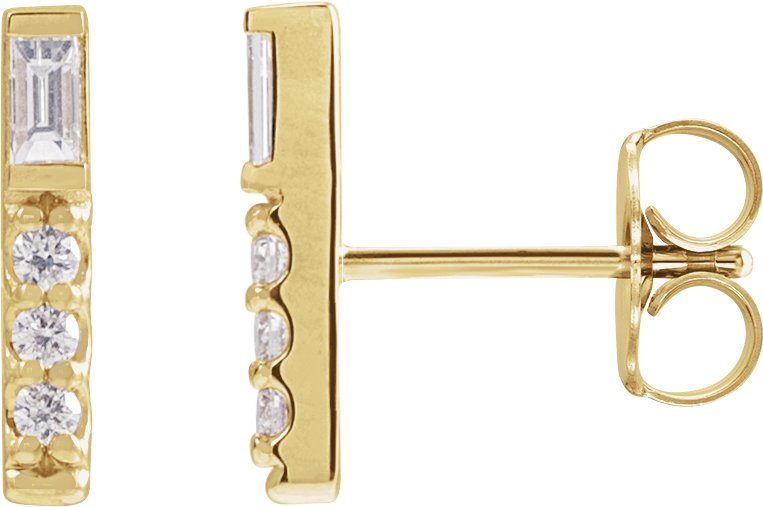 88293 / Earring / Set / Natural Diamond / Straight Baguette / 3 X 1.5 Mm / 14K Yellow / Natural Diamond / Pair / Friction Backs Included / Polished / 1/5 Ctw Natural Diamond Bar Earrings