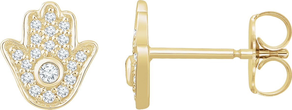 652738 / Earring / Set / Natural Diamond / Round / 1.5 Mm / 14K Yellow / Natural Diamond / Pair / Friction Backs Included / Polished / 1/5 Ctw Natural Diamond Hamsa Earrings