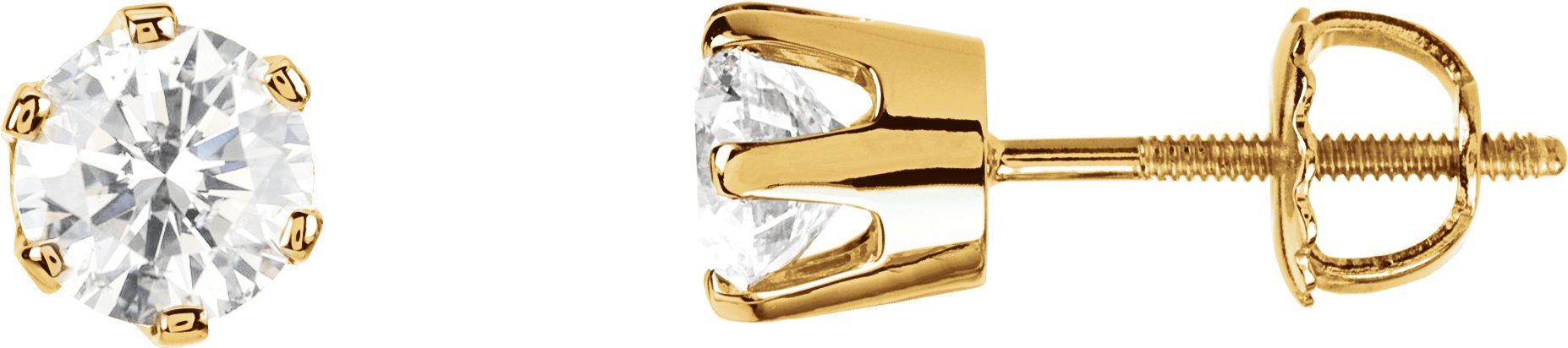 62865 / 14K Yellow / Set / Round / Natural Diamond / Pair / 3Mm :: 1/5 Ctw / I1, G-H / Threaded Post / Threaded Backs Included / 6-Prong / Polished / Natural Diamond Earrings