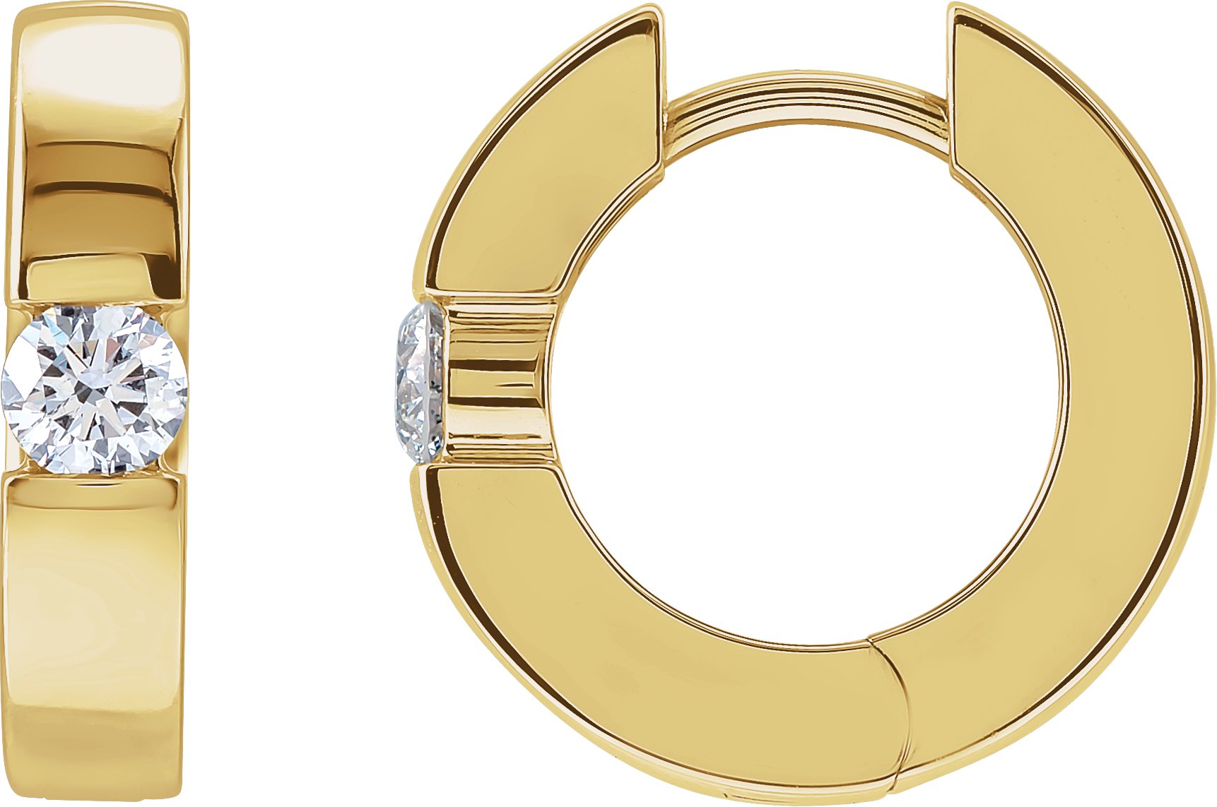 20120 / Set / Natural Diamond / Pair / 15 Mm :: 1/3 Ctw / 14K Yellow / I1, G-H / Polished / 1/3 Ctw Natural Diamond Hinged Huggie Earrings