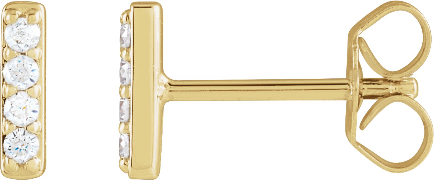 688886 / Earring / Set / Natural Diamond / Round / 1.5 Mm / 14K Yellow / Pair / Friction Backs Included / Polished / 1/8 Ctw Natural Diamond 4-Stone Bar Earrings