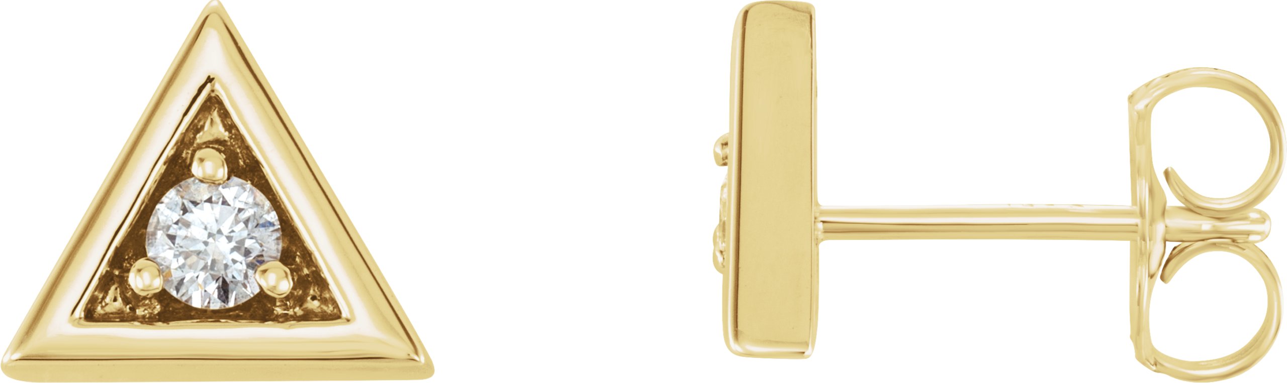 86510 / 14K Yellow / Set / Round / Natural Diamond / Pair / 2.5Mm :: 1/8 Ctw / I1, G-H / Friction Post / Friction Backs Included / 3-Prong / Polished / 1/8 Ctw Natural Diamond Triangle Earrings