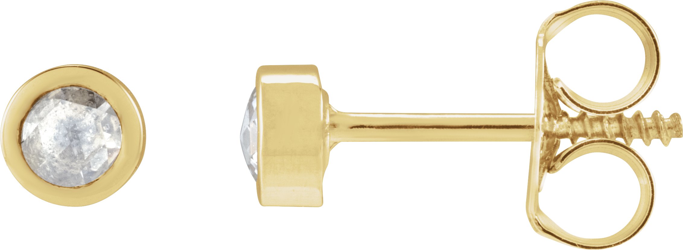 88261 / 14K Yellow / Set / Round / Natural Diamond / Pair / 2.5Mm :: 1/8 Ctw / Vs/Si1, Ghi / Threaded / Threaded Backs Included / Bezel / Polished / 1/8 Ctw Rose-Cut Natural Diamond Youth Bezel-Set Earrings