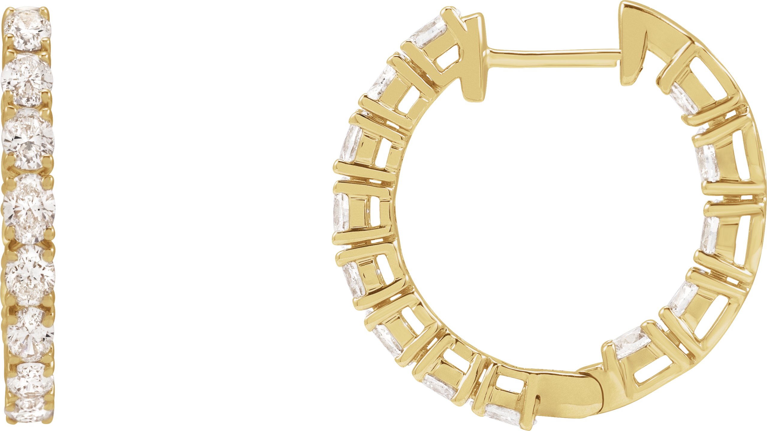 689126 / Earring / Set / 14K Yellow / 20.67 Mm / 2.5 Mm / Lab-Grown Diamond / Oval / 3.2 X 2.3Mm :: 2 5/8 Ctw / Si1-Si2, Gh / Pair / Hinged / Polished / 2 5/8 Ctw Lab-Grown Diamond Hoop Earrings