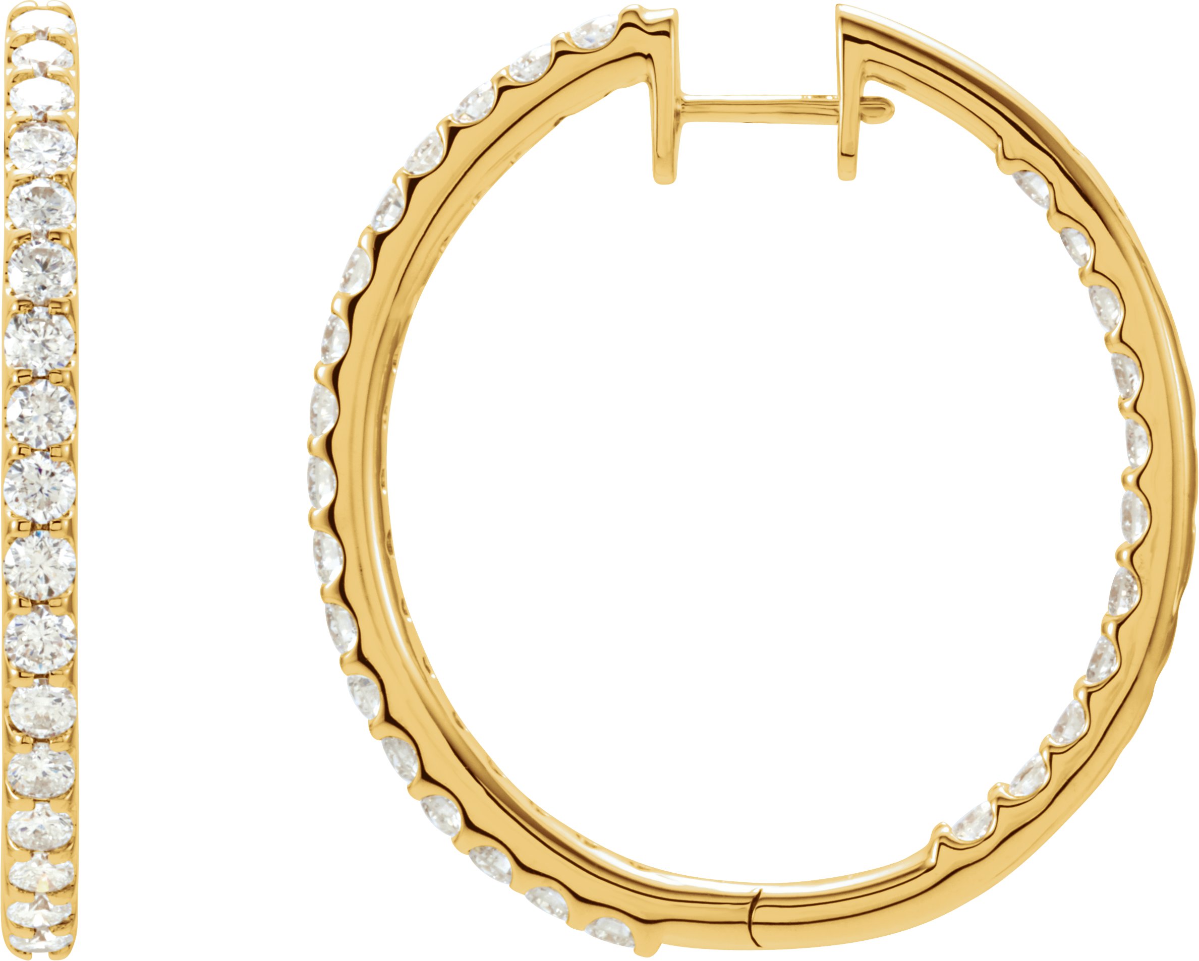 61378 / Earring / Set / 14K Yellow / 35.3 Mm / 2.6 Mm / Natural Diamond / Round / Pair / Hinged / Polished / 3 Ctw Natural Diamond Inside-Outside Hinged Hoop Earrings