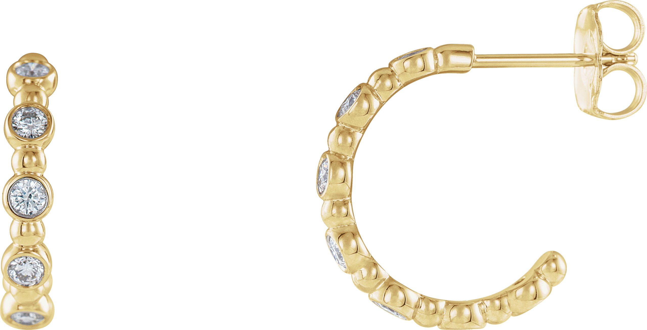 86685 / Earring / Set / Natural Diamond / Round / 2 Mm / 14K Yellow / Pair / Friction Backs Included / Polished / 3/8 Ctw Natural Diamond Beaded Hoop Earrings