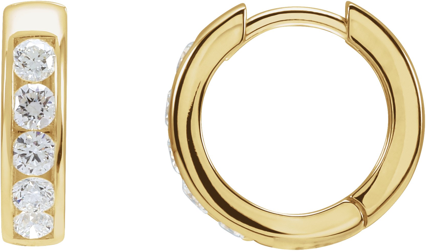 88108 / Earring / Set / 14K Yellow / 14 Mm / 3.5 Mm / Natural Diamond / Round / 2.5Mm :: 5/8 Ctw / Pair / Hinged / Polished / 5/8 Ctw Natural Diamond Hinged Hoop Earrings