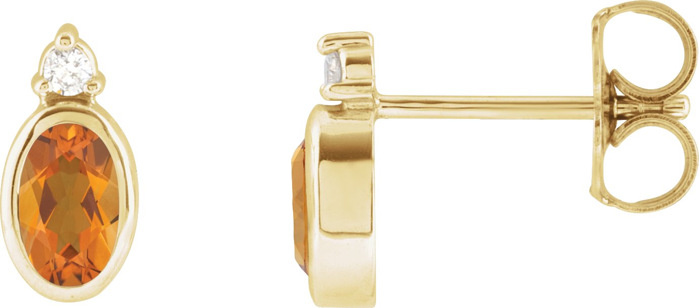 88546 / Earring / Set / Natural Citrine / Oval / 5 X 3 Mm / 14K Yellow / Natural Diamond / Pair / Friction Backs Included / Polished / Natural Citrine And .03 Ctw Natural Diamond Earrings