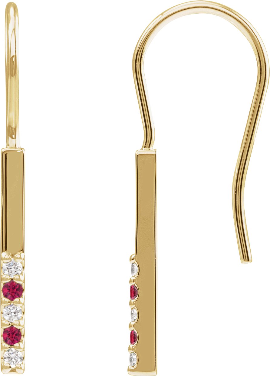 14K Yellow Natural Ruby & .08 CTW Natural Diamond Bar Earrings