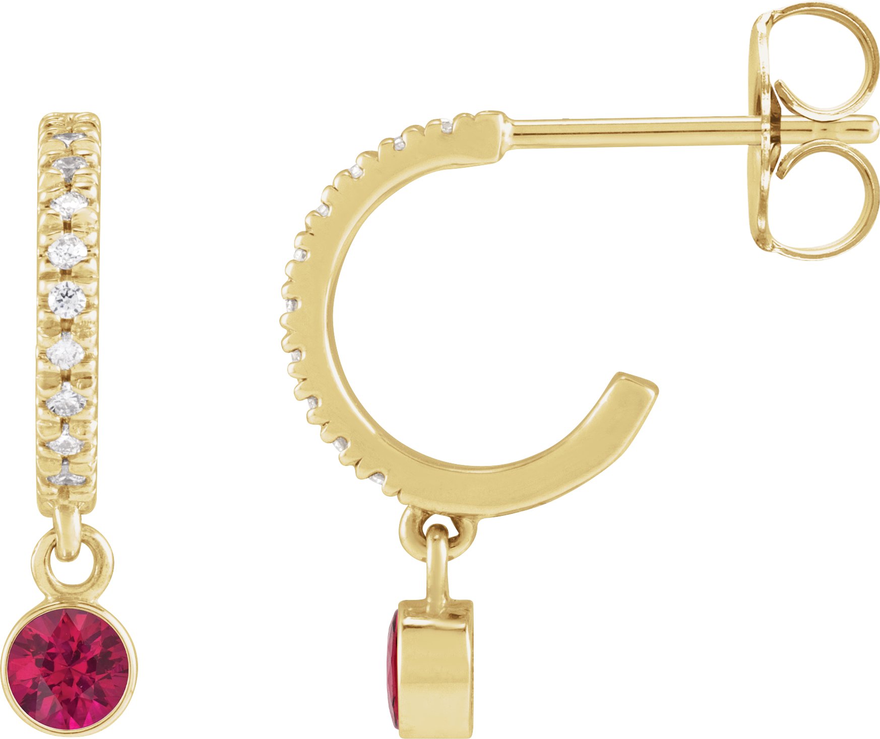 88409 / Earring / Set / 14K Yellow / 16.1 Mm / 3.5 Mm / Natural Ruby / Round / 3Mm :: 0.08 Ctw / I1, Gh / Pair / Friction Backs Included / Polished / Natural Ruby And .08 Ctw Natural Diamond French-Set Hoop Earrings