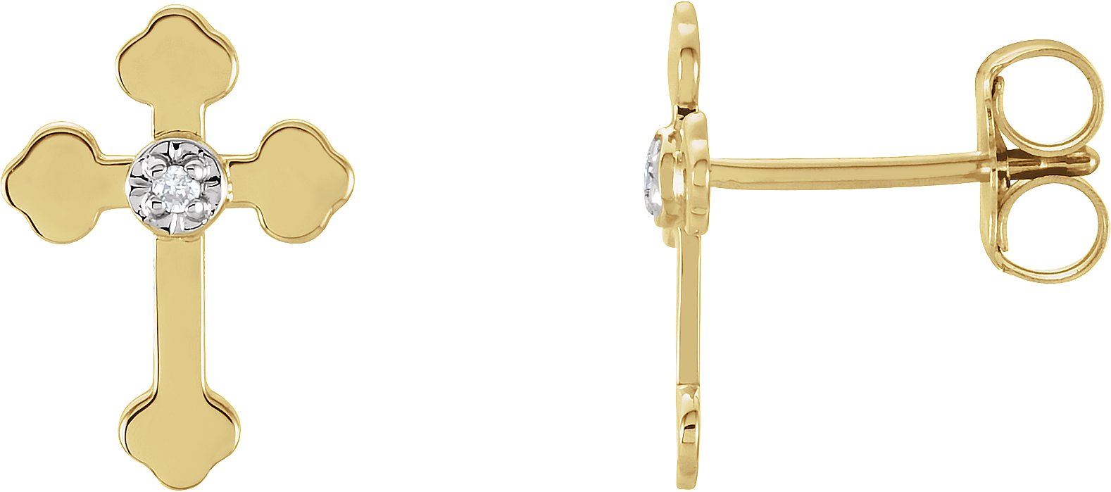 R16556 / Earring / Set / Natural Diamond / Round / 1 Mm / 14K Yellow/White / Pair / Friction Backs Included / Polished / .01Ctw Natural Diamond Cross Earring