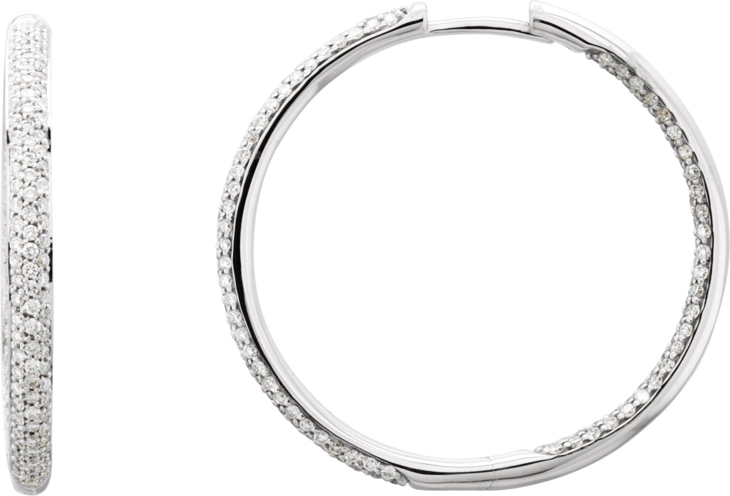 67159 / Set / Natural Diamond / Pair / 32 Mm :: 1 3/4 Ctw / 18K White / Si1, G-H / Hinged / Polished / Inside-Outside Hinged Hoop Earrings