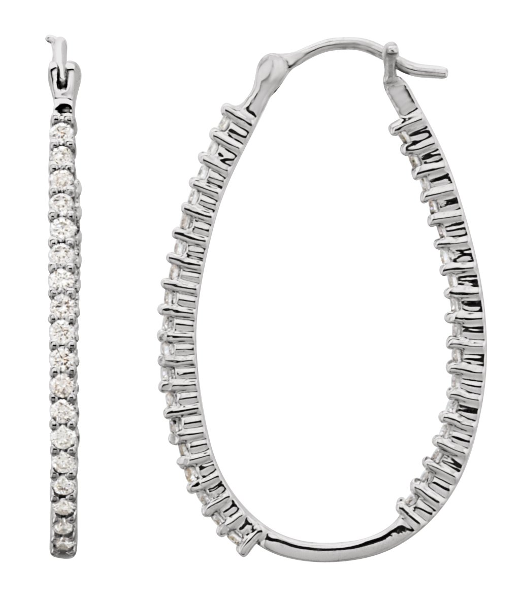 66420 / Earring / Set / Platinum / 32.4 X 20.4 Mm / 2.5 Mm / Natural Diamond / Round / 1.5Mm :: 1 Ctw / Pair / Catch / Polished / 1 Ctw Natural Diamond Inside-Outside Hinged Hoop Earrings
