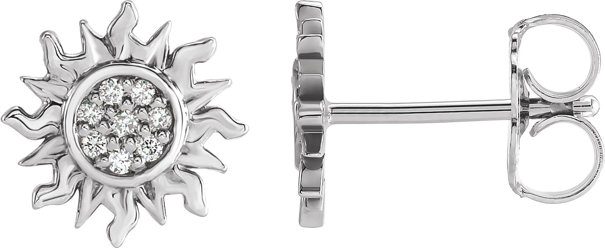 87493 / Earring / Set / Natural Diamond / Round / 1 Mm / Sterling Silver / Pair / Friction Backs Included / Polished / .02 Ctw Diamond Sun Earring