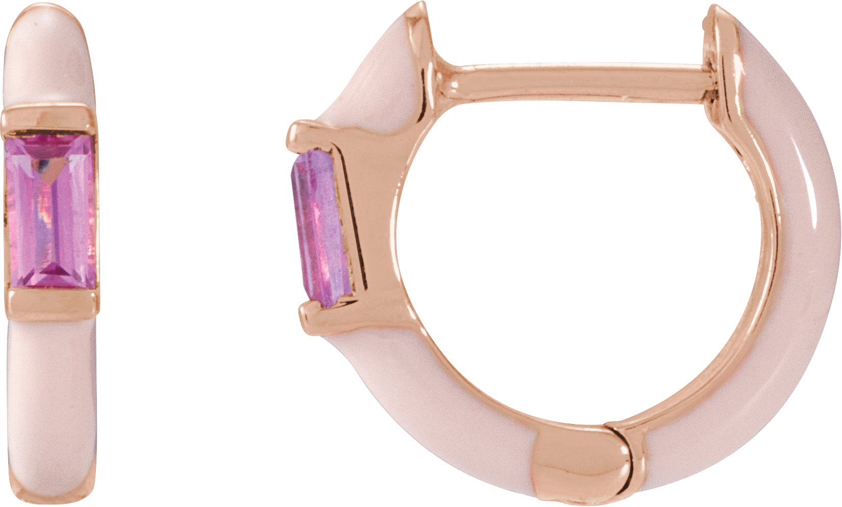 689132 / Earring / Set / 14K Rose / 11 Mm / 2.1 Mm / Natural Pink Tourmaline / Straight Baguette / 3.5 X 1.8 Mm / Pair / Hinged / Polished / Natural Pink Tourmaline And Pink Enamel Hinged Hoop Earrings