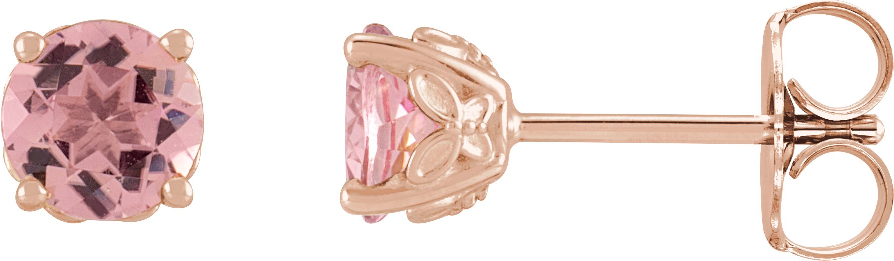 88123 / 14K Rose / Set / Round / Natural Pink Tourmaline / Pair / 6 Mm / Friction / Friction Backs Included / 4-Prong / Polished / Natural Pink Tourmaline 4-Prong Basket Earrings