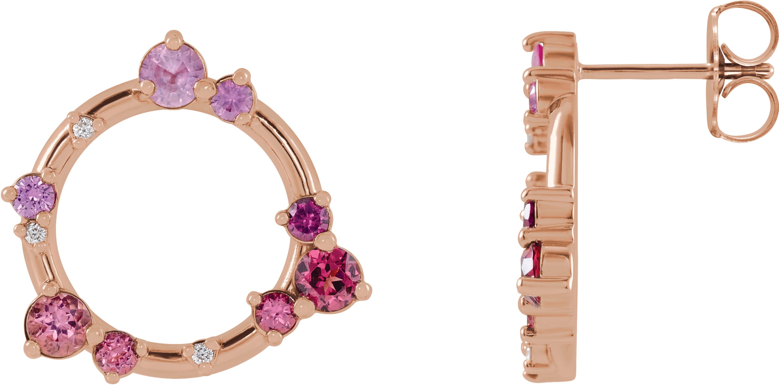 87147 / Earring / Set / Natural Pink Multi-Gemstone / Round / 14K Rose / Natural Diamond / Pair / Friction Backs Included / Polished / Natural Pink Multi-Gemstone And .03 Ctw Natural Diamond Circular Earrings
