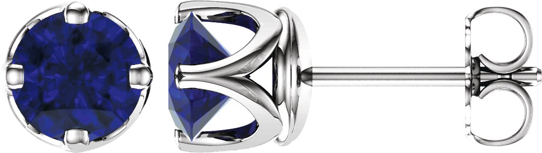28810 / 14K White / Set / Sapphire / 06.00 Mm / Pair / Polished / Earrings