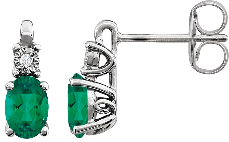 651536 / Earring / Set / Lab-Grown Emerald / Oval / 6 X 4 Mm / 14K White / Natural Diamond / Pair / Friction Backs Included / Polished / Lab-Grown Emerald And .02 Ctw Natural Diamond Earrings With Backs