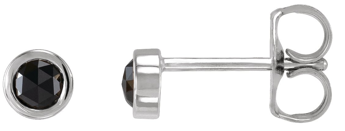 87612 / 14K White / Set / Round / Natural Black Diamond / Pair / 3Mm :: 1/5 Ctw / Friction / Friction Backs Included / Bezel / Polished / 1/5 Ctw Black Rose-Cut Diamond Bezel-Set Solitaire Earrings