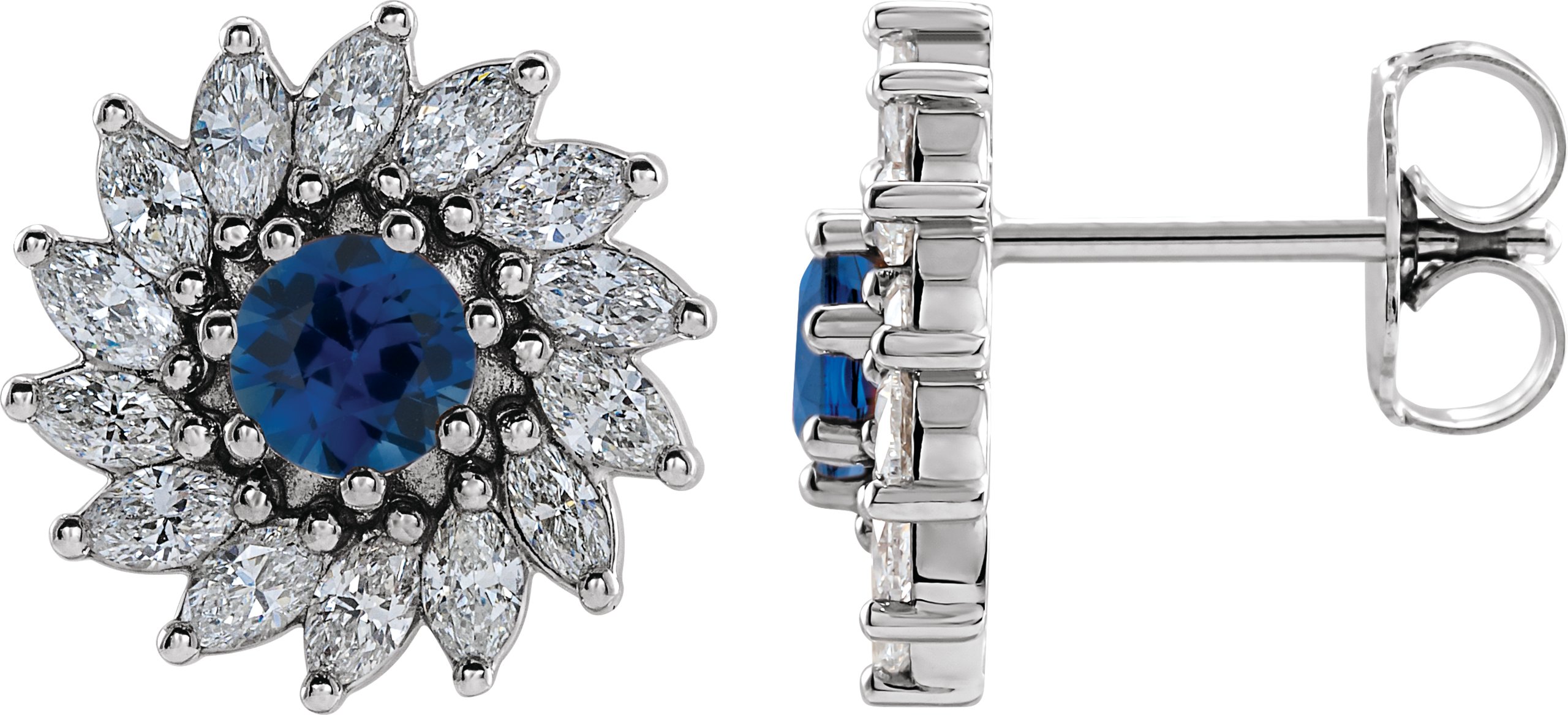 87218 / Earring / Set / Lab-Grown Blue Sapphire / Round / 3.5 Mm / 14K White / Pair / Friction Backs Included / Polished / Lab-Grown Blue Sapphire And 3/4 Ctw Natural Diamond Earrings
