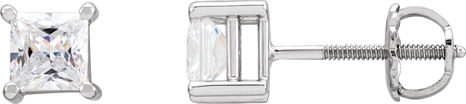 63763 / 14K White / Set / Square / Imitation White Cubic Zirconia / Pair / 4.5 X 4.5 Mm / Threaded / Threaded Backs Included / 4-Prong / Polished / Imitation White Cubic Zirconia Earrings