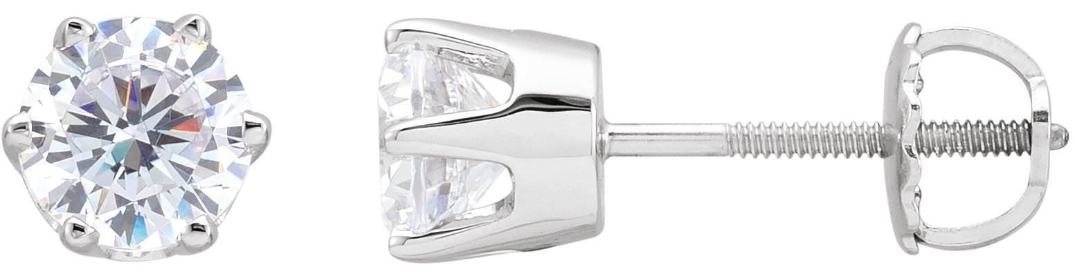 62944 / 14K White / Set / Round / Imitation White Cubic Zirconia / Pair / 5.75 Mm / Threaded / Threaded Back Included / 6-Prong / Polished / Imitation White Cubic Zirconia Earrings
