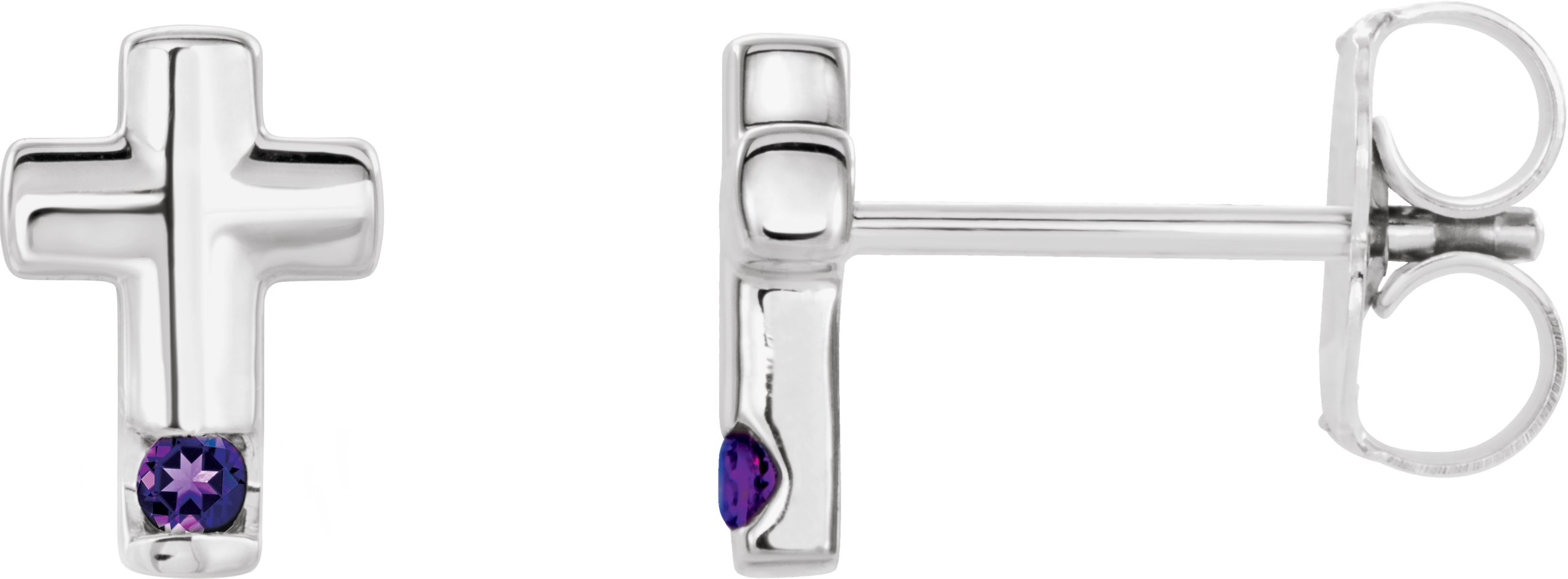 R17020 / Set / 14K White / Amethyst / Pair / Polished / Natural Amethyst Cross Earrings