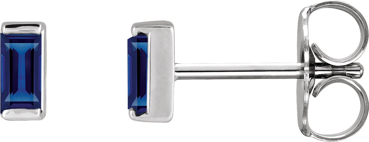 88107 / 14K White / Set / Straight Baguette / Lab-Grown Blue Sapphire / Pair / 4 X 2 Mm / Friction / Friction Backs Included / Polished / Natural Blue Sapphire Channel-Set Earring