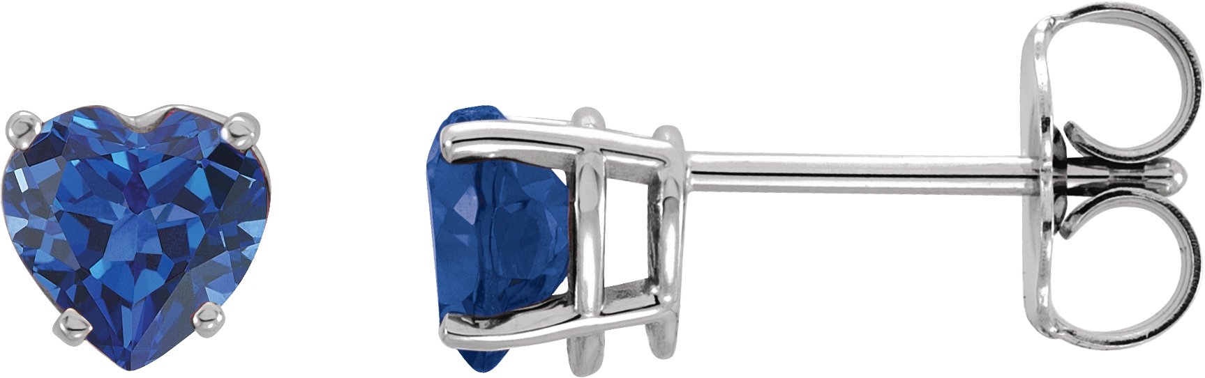 61734 / 14K White / Set / Heart / Lab-Grown Blue Sapphire / Pair / 6 X 6 Mm / Friction / Friction Backs Included / 4-Prong / Polished / Heart Earrings