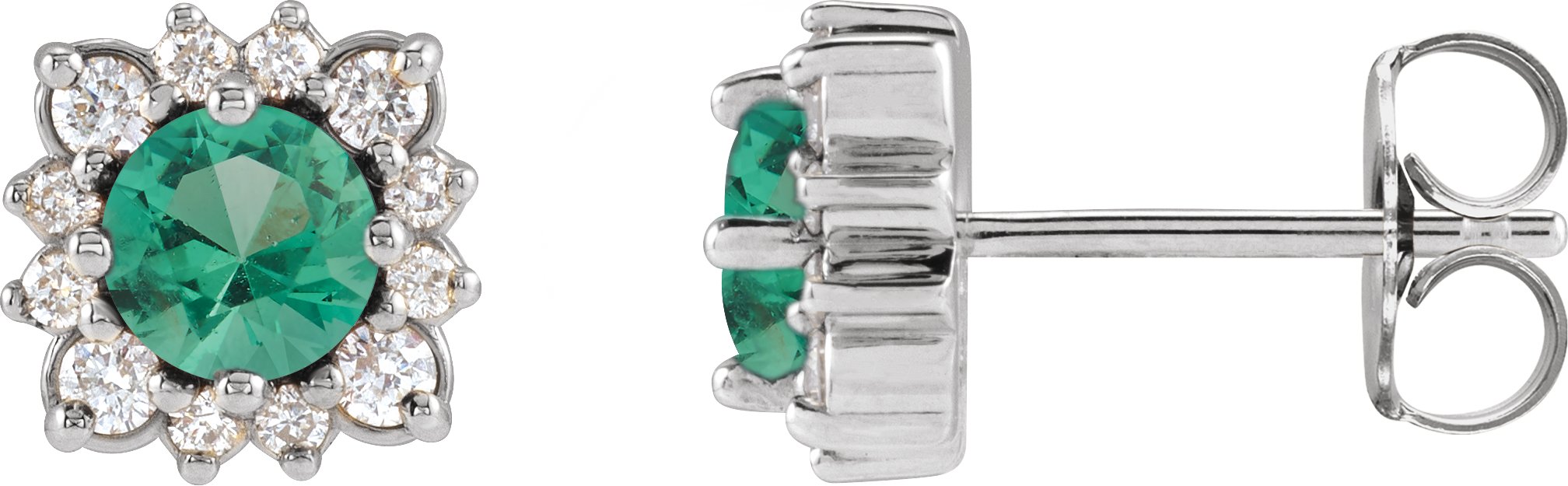 88493 / Earring / Set / Lab-Grown Emerald / Round / 5 Mm / 14K White / Natural Diamond / Pair / Friction Backs Included / Polished / Lab-Grown Emerald And 1/2 Ctw Natural Diamond Halo-Style Earrings