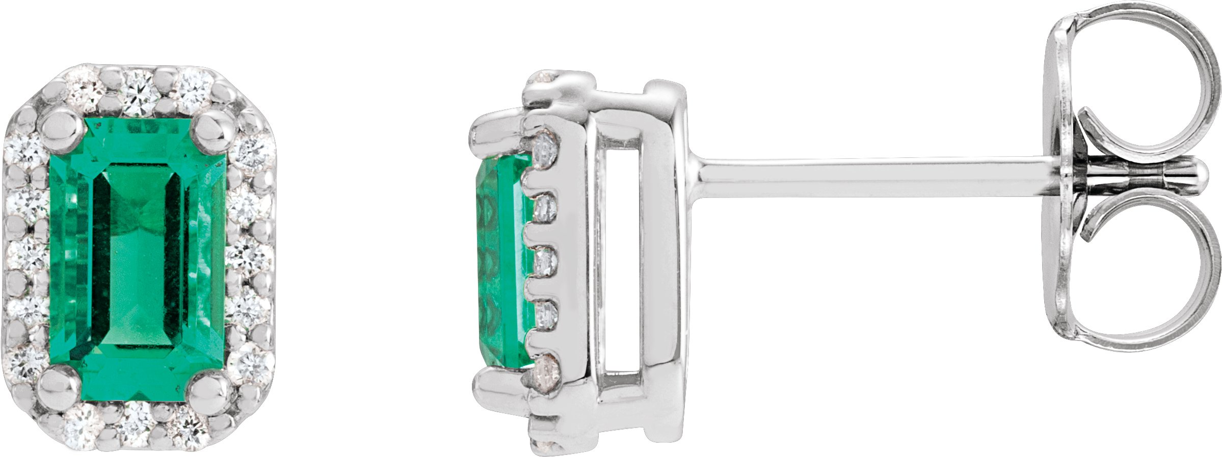 88544 / Earring / Set / Lab-Grown Emerald / Emerald / 6 X 4 Mm / 14K White / Natural Diamond / Pair / Friction Backs Included / Polished / Lab-Grown Emerald And 1/8 Ctw Natural Diamond Halo-Style Earrings