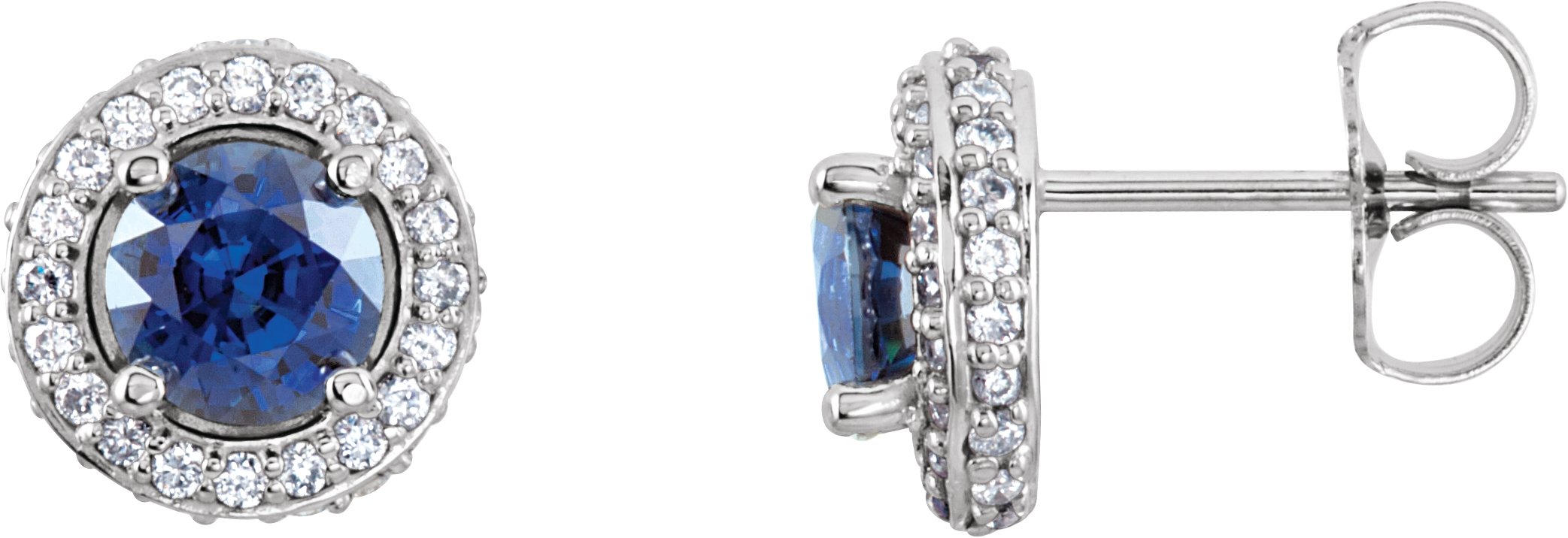 68602 / Earring / Set / Natural Blue Sapphire / Round / 5 Mm / 14K White / Natural Diamond / Pair / Friction Backs Included / Polished / Natural Sapphire And 1/3 Ctw Natural Diamond Earrings