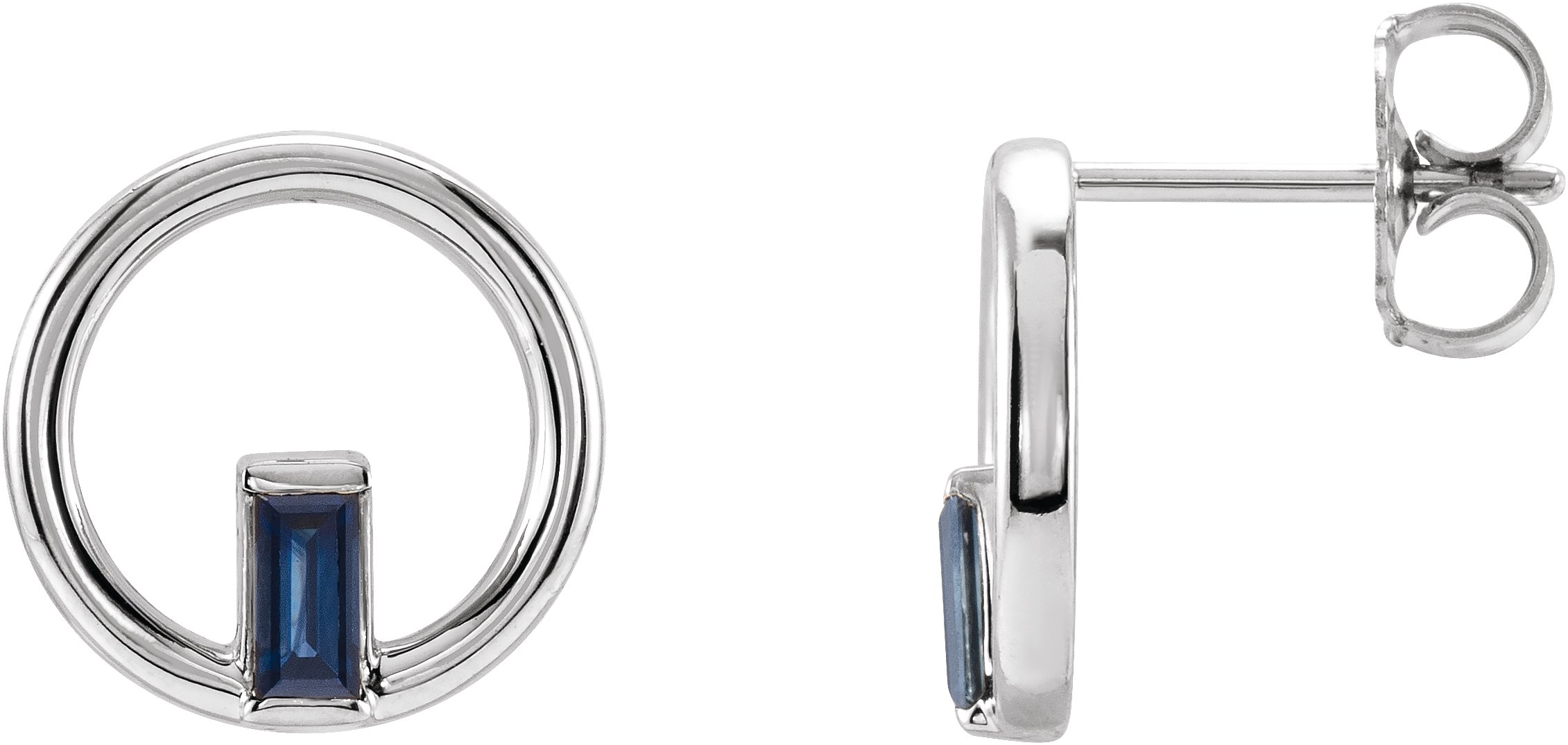 87333 / Earring / Set / Natural Blue Sapphire / Straight Baguette / 4 X 2 Mm / 14K White / Pair / Friction Backs Included / Polished / Blue Sapphire Circle Baguette Stud Earrings