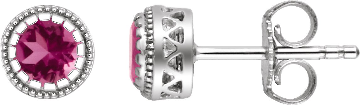 651610 / 14K White / Set / Round / Natural Pink Tourmaline / Pair / 4 Mm / Friction / Friction Backs Included / Bezel / Polished / Natural Pink Tourmaline Birthstone Earrings With Backs