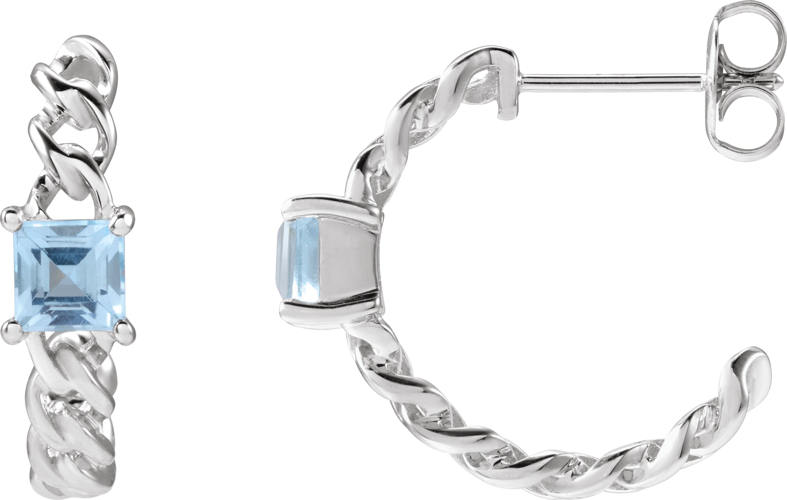 689082 / Earring / Set / Natural Sky Blue Topaz / Square / 4 X 4 Mm / 14K White / Pair / Friction Backs Included / Polished / Natural Sky Blue Topaz Earrings