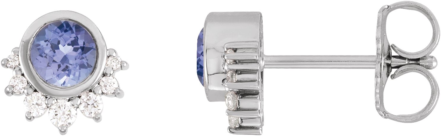 87608 / Earring / Set / Natural Tanzanite / Round / 4 Mm / 14K White / Pair / Friction Backs Included / Polished / Natural Tanzanite And .08 Ctw Natural Diamond Half Sunburst Earrings