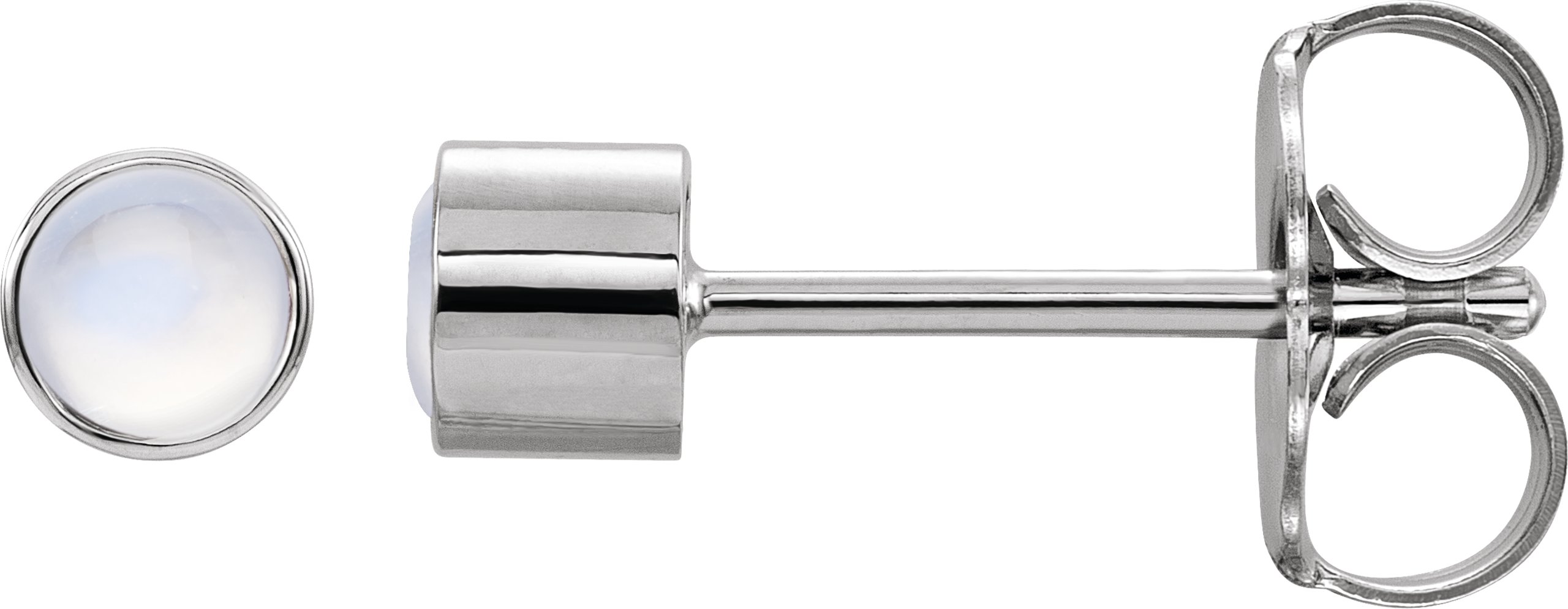 2000316 / Earring / Set / Natural Moonstone / Round / 3 Mm / 14K White / Each / Friction Back Included / Polished / Natural Moonstone Bezel-Set Earring