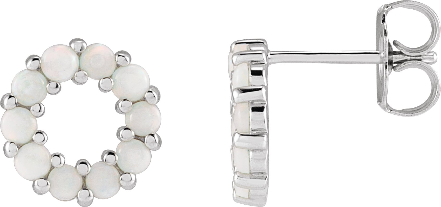 88085 / Earring / Set / Natural White Opal / Round / 2 Mm / 14K White / Pair / Friction Backs Included / Polished / White Opal Cabochon Earrings