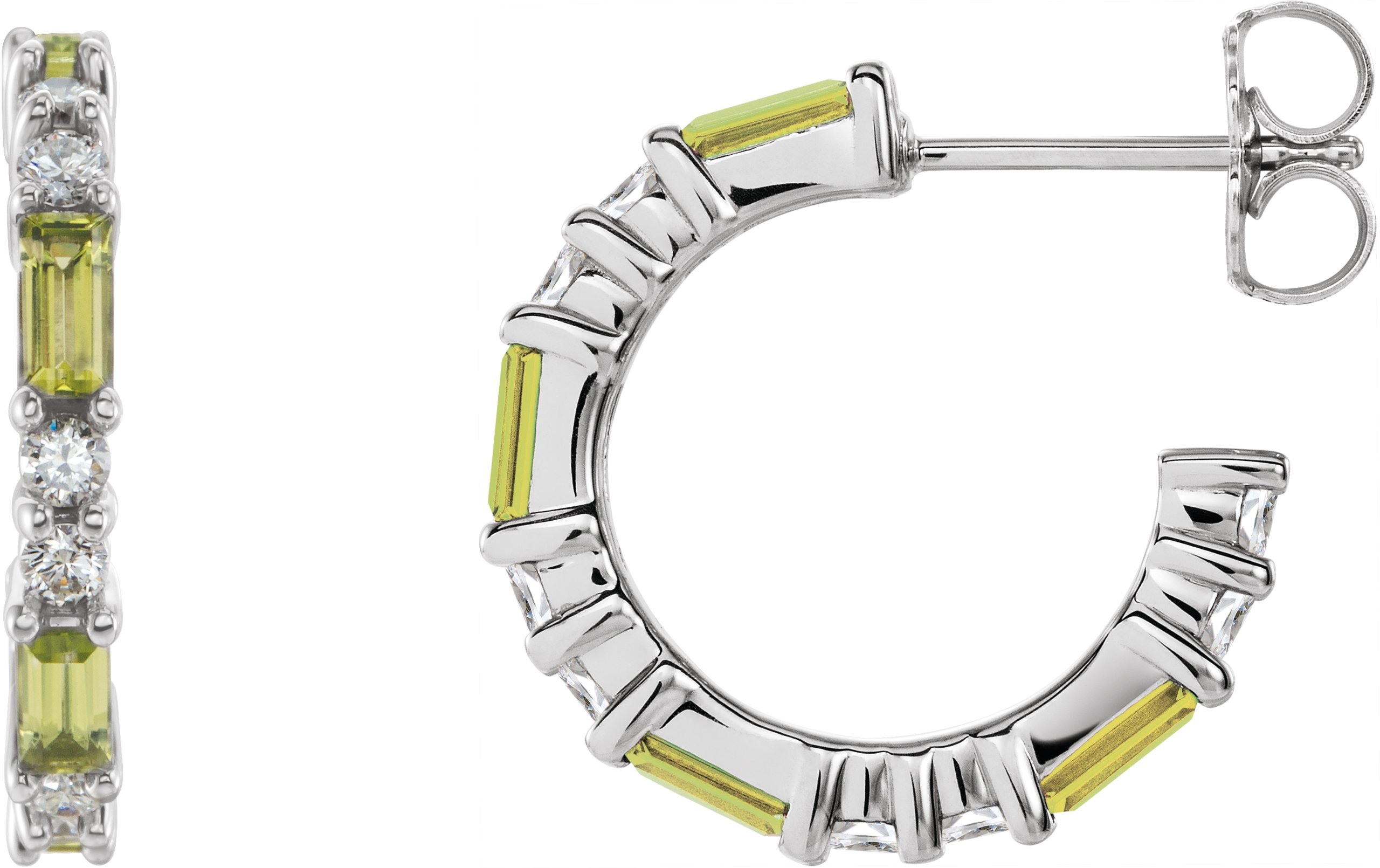 86789 / Set / 14K White / Green Peridot / Pair / Polished / Genuine Peridot And 1/2 Ctw Diamond Earrings