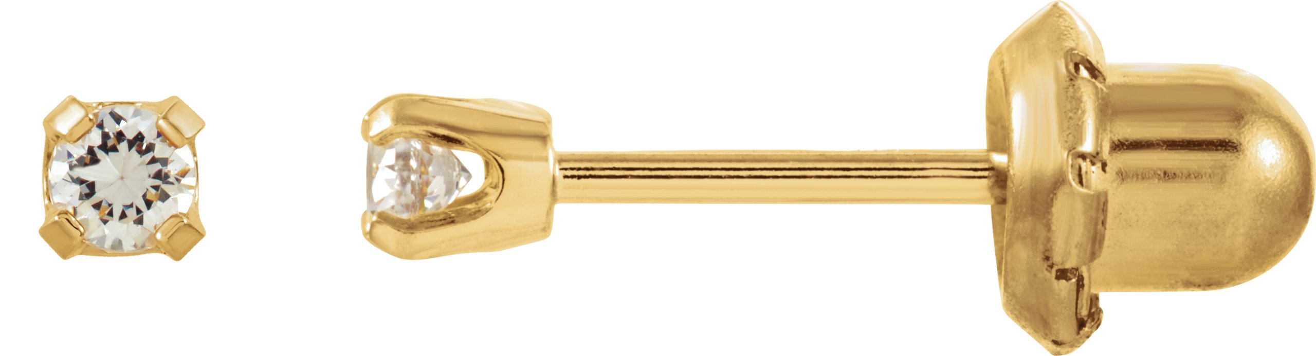 21506 / 14K Yellow / Set / Round / Imitation White Cubic Zirconia / Pair / 2 Mm / Piercing / Piercing Backs Included / 4-Prong / Polished / Inverness Cubic Zirconia Piercing Earrings