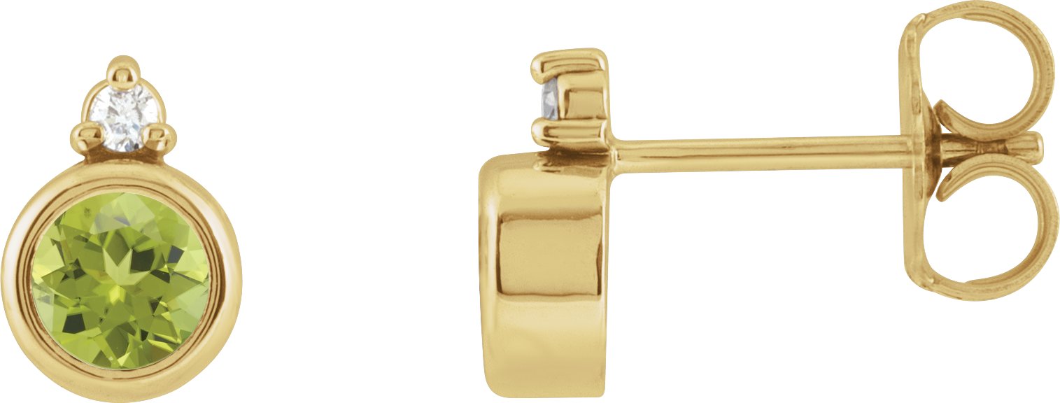 88546 / Earring / Set / Natural Peridot / Round / 4 Mm / 14K Yellow / Natural Diamond / Pair / Friction Backs Included / Polished / Natural Peridot And .03 Ctw Natural Diamond Earrings