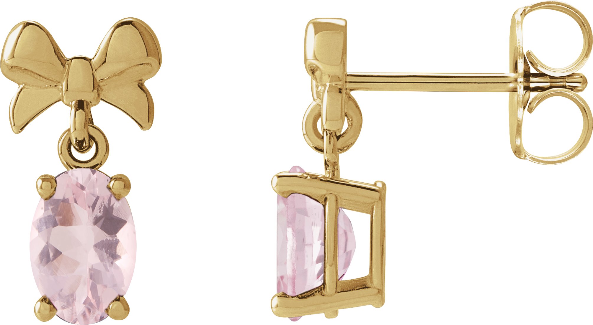 88539 / Earring / Set / Natural Pink Morganite / Oval / 6 X 4 Mm / 14K Yellow / Pair / Friction Backs Included / Polished / Natural Pink Morganite Bow Earrings