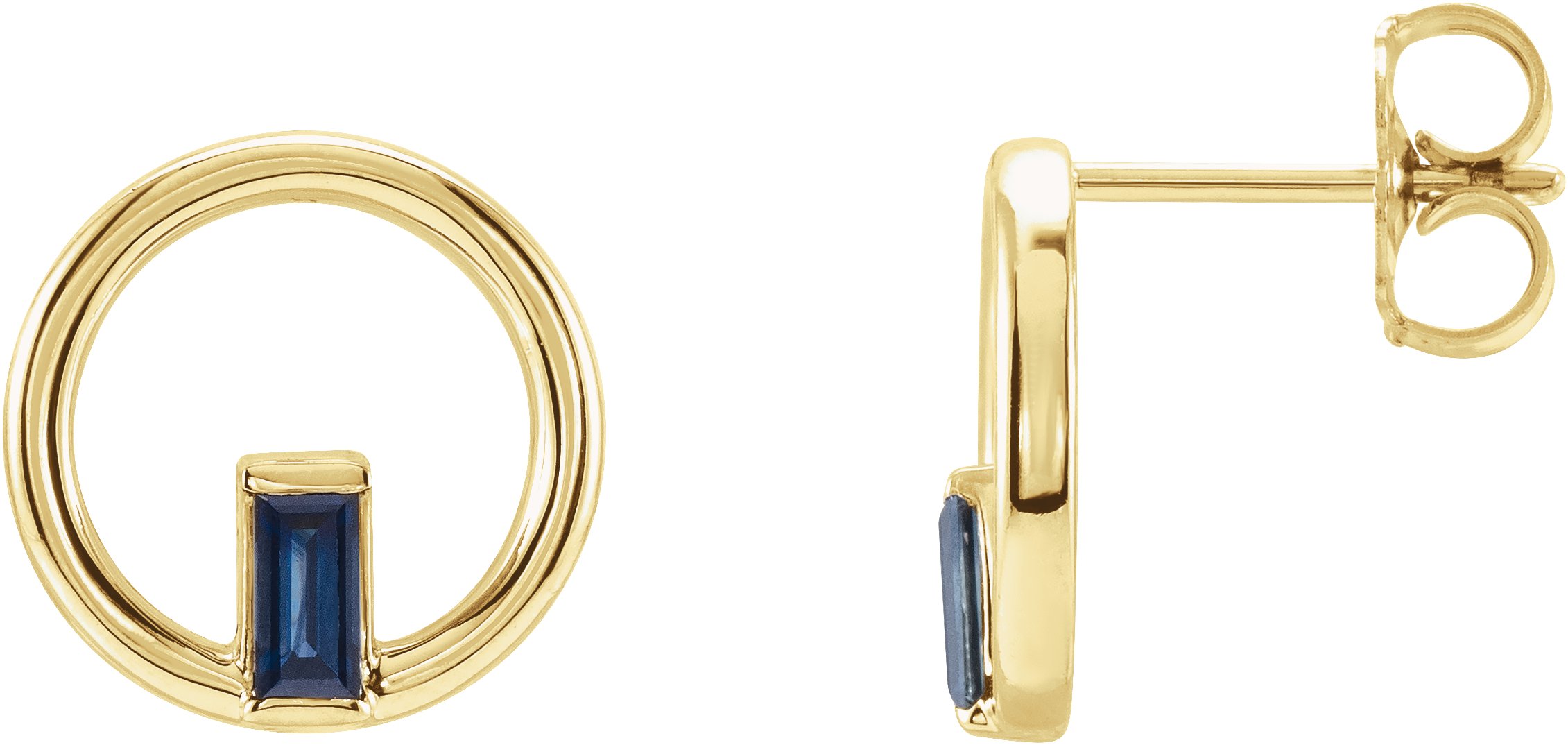 87333 / Earring / Set / Blue Sapphire / Straight Baguette / 4 X 2 Mm / 14K Yellow / Pair / Friction Backs Included / Polished / Blue Sapphire Circle Baguette Stud Earrings