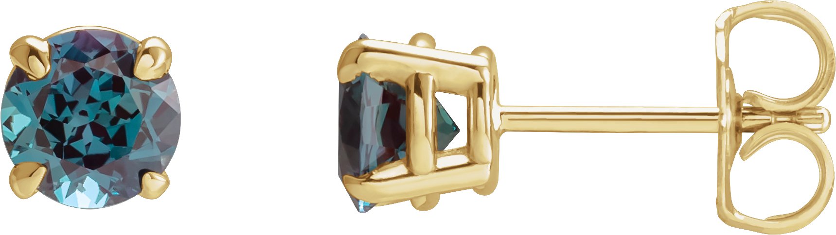 2000243 / 14K Yellow / Set / Round / Lab-Grown Alexandrite / Pair / 5 Mm / Friction / Friction Backs Included / 4-Prong / Polished / Lab-Grown Alexandrite 4-Claw Prong Basket Earrings