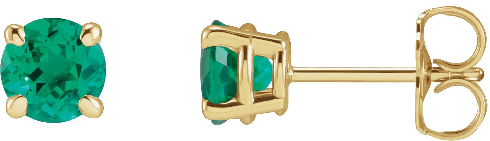 2000243 / 14K Yellow / Set / Round / Lab-Grown Emerald / Pair / 5 Mm / Friction / Friction Backs Included / 4-Prong / Polished / Lab-Grown Emerald 4-Claw Prong Basket Earrings
