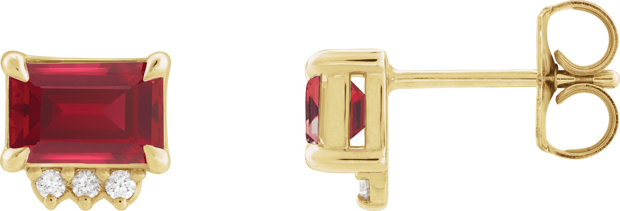 88784 / Earring / Set / Lab-Grown Ruby / Emerald / 5 X 3 Mm / 14K Yellow / Natural Diamond / Pair / Friction Backs Included / Polished / Lab-Grown Ruby And .04 Ctw Natural Diamond 4-Claw Prong Earrings