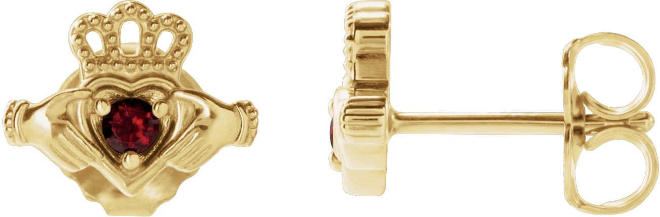 88302 / Earring / Set / Natural Mozambique Garnet / Round / 2 Mm / 14K Yellow / Pair / Friction Backs Included / Polished / Natural Mozambique Garnet Claddagh Earrings