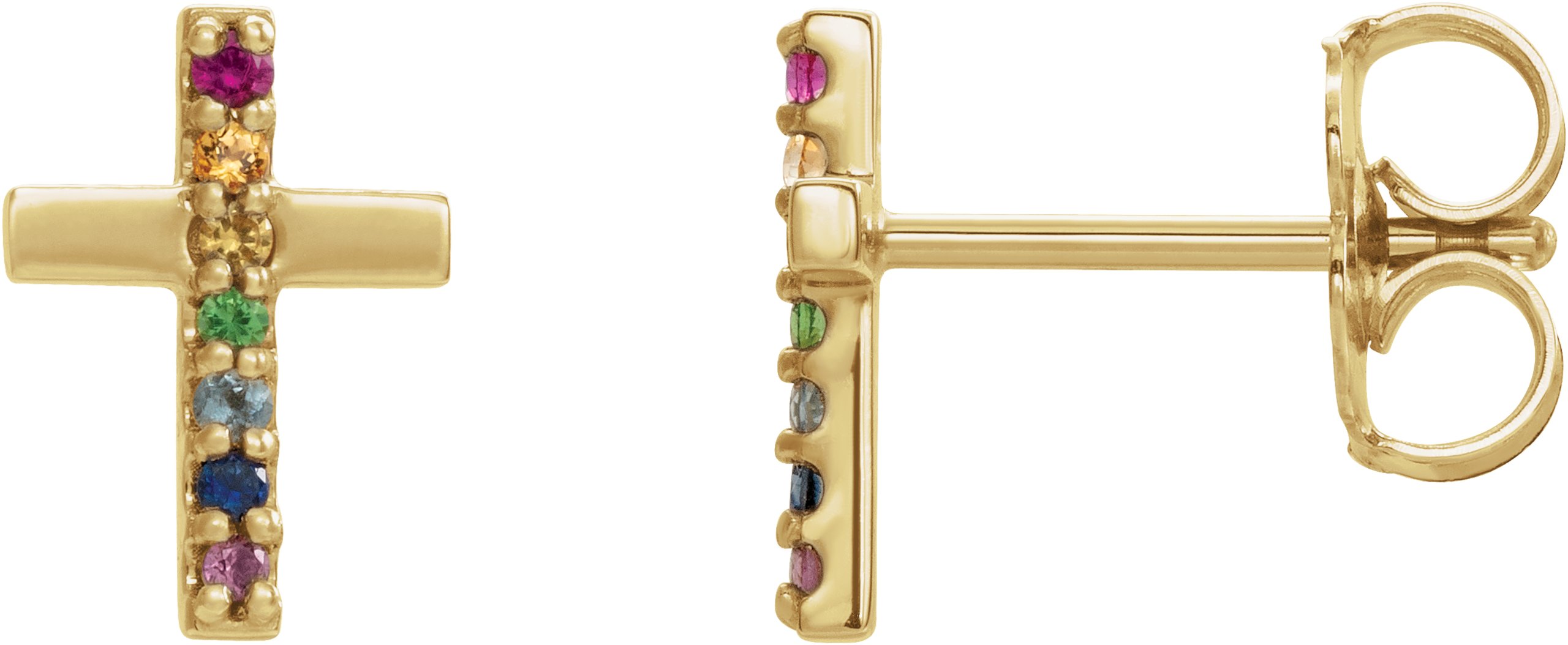 R17028 / Earring / Set / Natural Multi-Gemstone / Round / 1 Mm / 14K Yellow / Pair / Friction Backs Included / Polished / Natural Multi-Colored Gemstone Cross Earrings