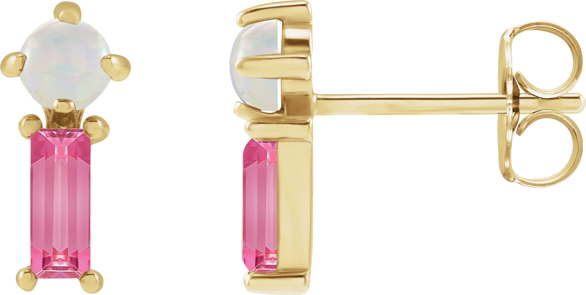 88270 / Earring / Set / Natural White Opal / Round / 3 Mm / 14K Yellow / Natural Pink Tourmaline / Pair / Friction Backs Included / Polished / Natural White Opal And Natural Pink Tourmaline 2-Stone Earrings